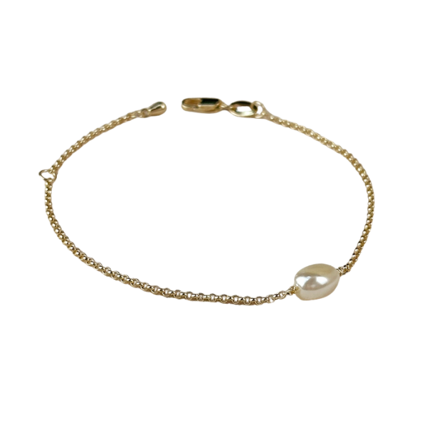 18K Gold Filled Bracelet - Single Baroque Pearl Bead