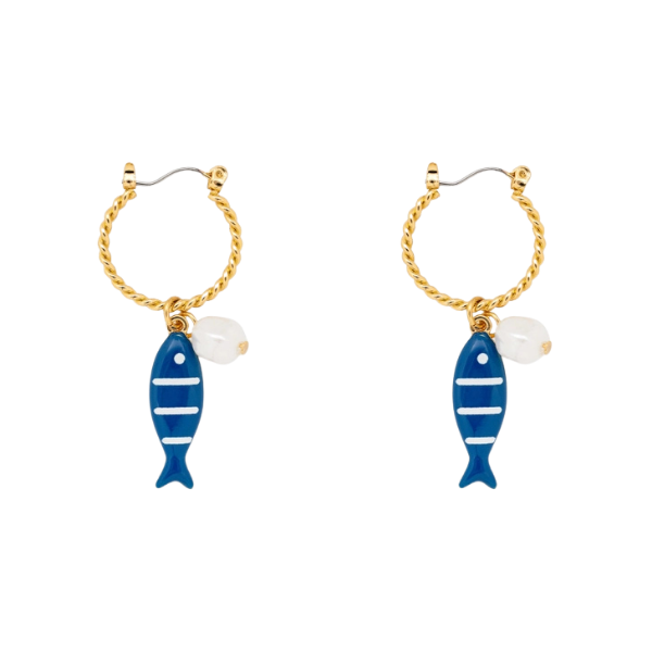 Add a splash of whimsy to your look with these Blue Fish & Pearl Charm Hoop Earrings. Playful yet elegant, they bring a touch of ocean-inspired charm to any outfit, making every day feel like a seaside adventure. Perfect for those who love to stand out with a fun, unique accessory.