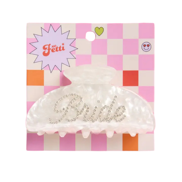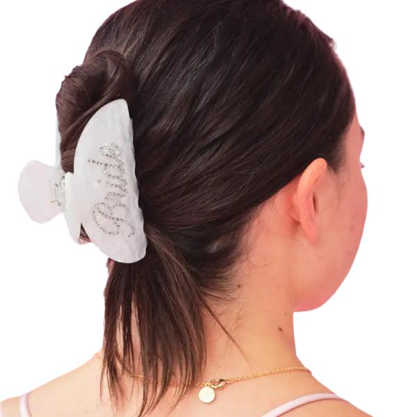 Get ready for an unforgettable bachelorette party with our Bride White Opalescent Claw Clip! Cute and fun, this clip is perfect for showing off your bridal status while getting ready for the big day. Don't miss out on making memories with your bridal squad.