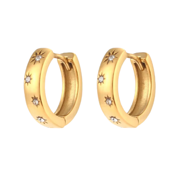 Add a spark to your everyday look with our Starburst Bezel Huggie Hoop Earrings. These cute and simple earrings are the perfect accessory for adding a little fun to any outfit.