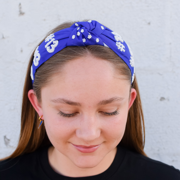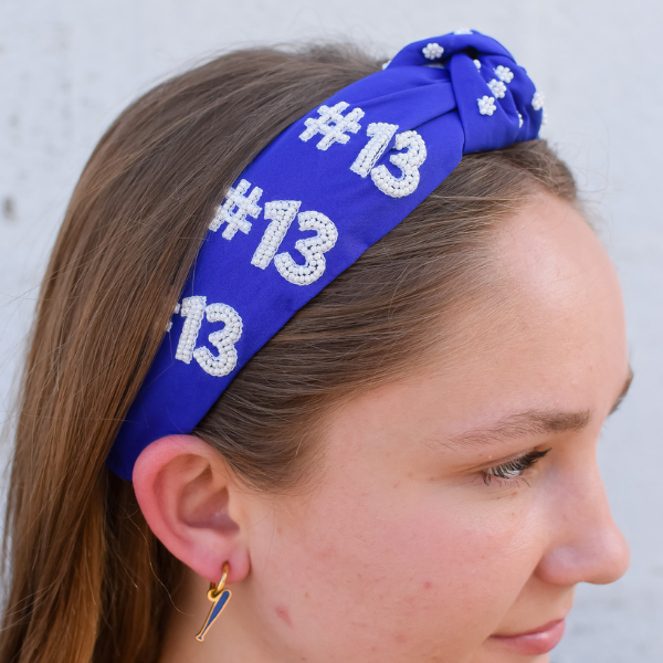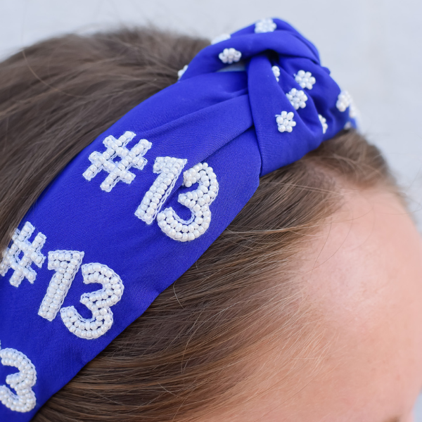 Get ready to turn heads with our Kansas City #13 Royal Blue Beaded Headband! Hand beaded and adorned with the iconic Salvy logo, this fun and cute headband is a must-have for any fashion-forward fan. Don't miss out on adding this unique accessory to your collection!