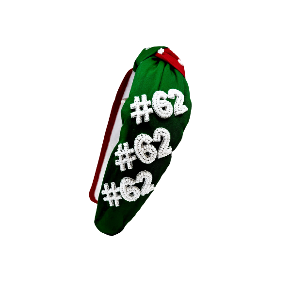Score a touchdown in style with our Kansas City #87 & Philly #62 Beaded Headband! This hand beaded headband is a fun accessory for football season. Perfect for fans of the Kelce brothers or anyone looking to add some flair to their game day look.