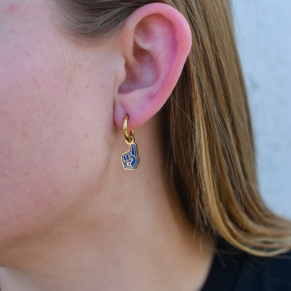 Cheer on your favorite team in style with our Kansas City Royal Blue Foam Finger Earrings! These cute and dainty earrings are perfect for any fan looking to show their support in a fun and unique way. Let your fandom shine with these must-have accessories!