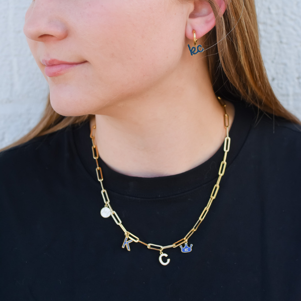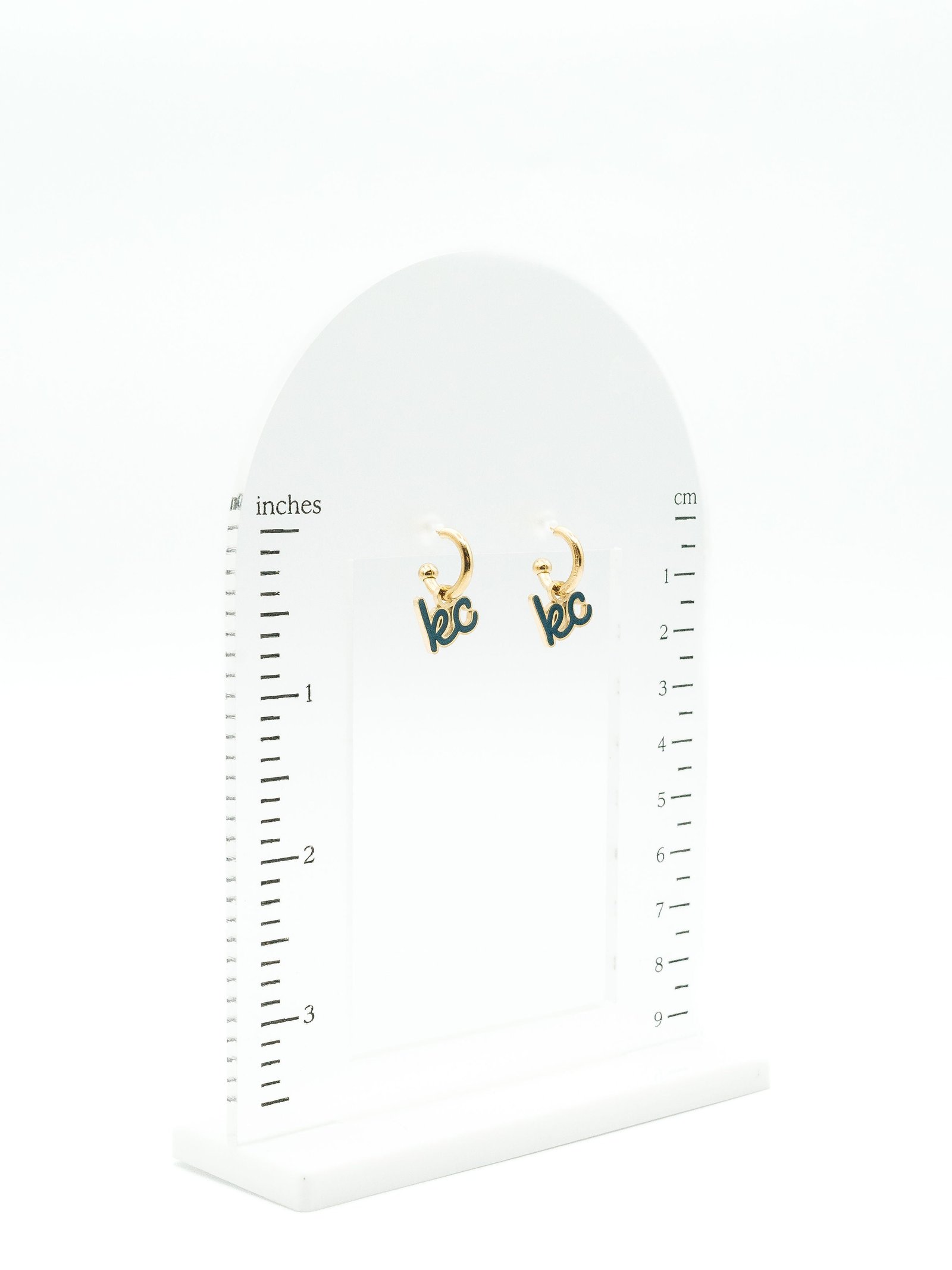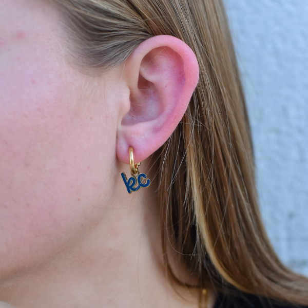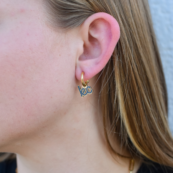 Add a subtle touch of cuteness to your outfit with our Kansas City Royal Blue Script Charm Huggie Hoop Earrings. Perfect for showing your support for the Royals in a playful way.