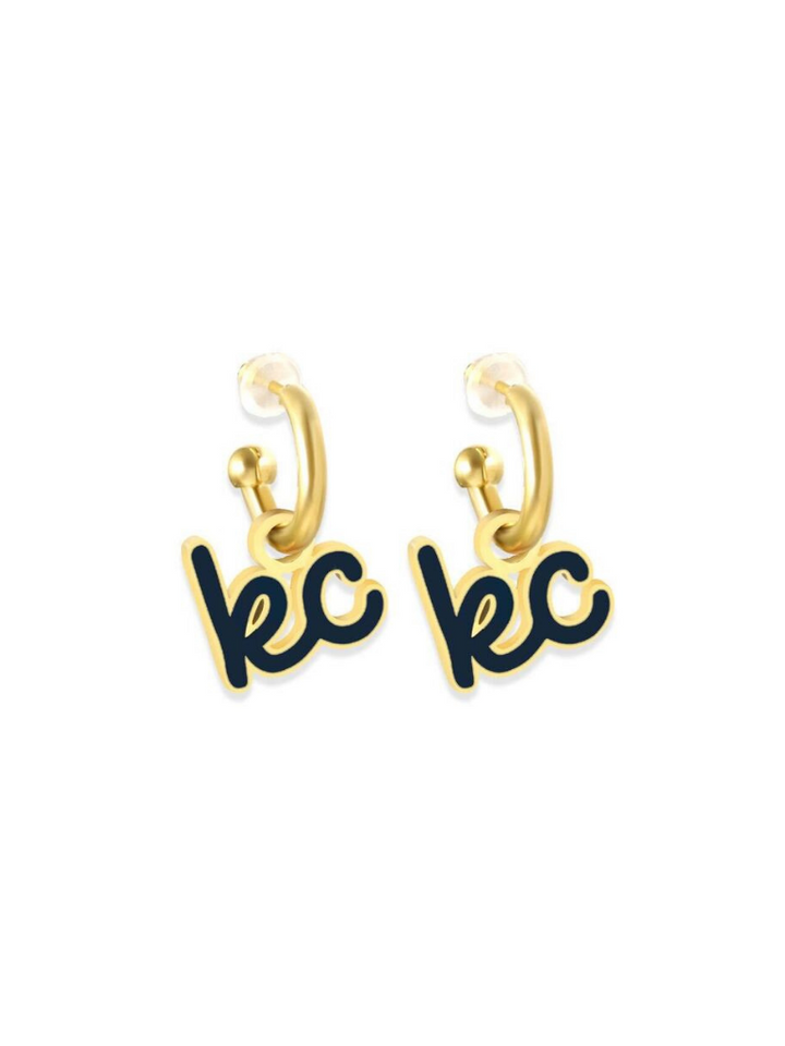 Kansas City Royal Blue Script Charm Huggie Hoop Earrings