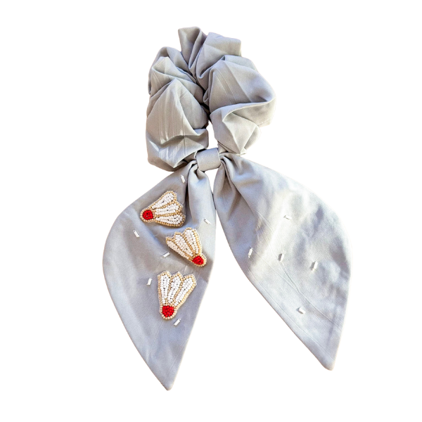 Kansas City Shuttlecock Beaded Gray Scrunchie