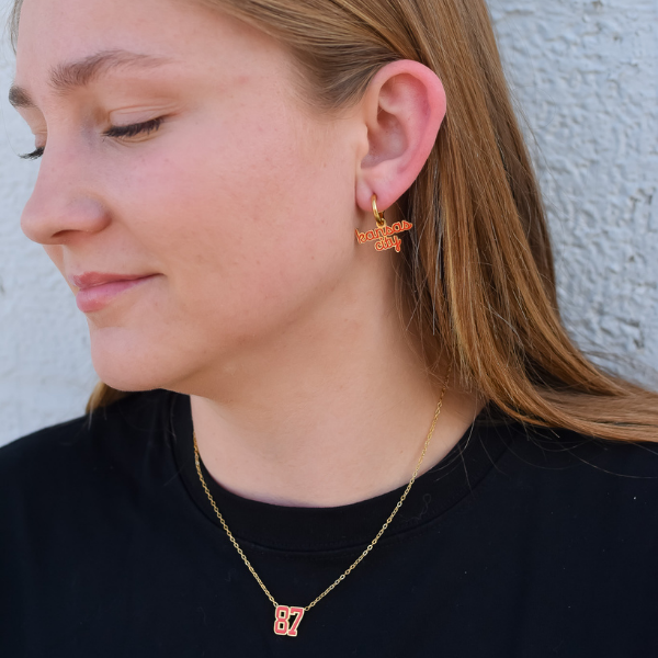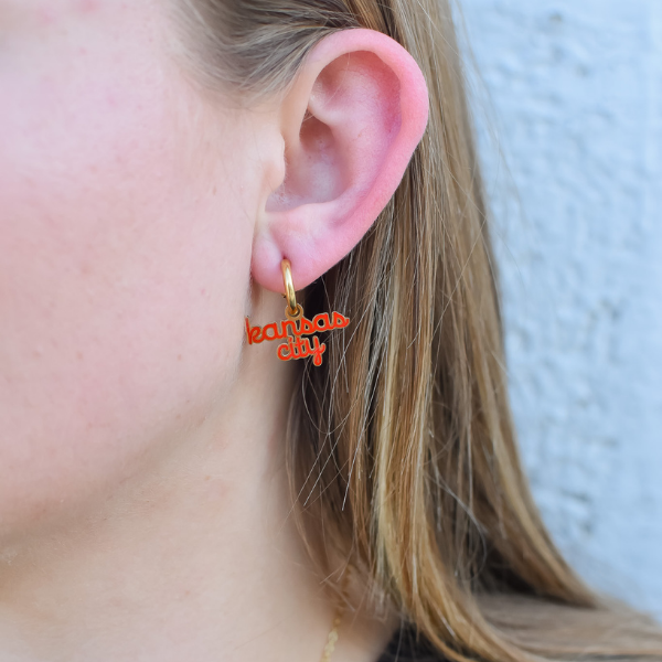 Show off your Kansas City pride with these adorable Stacked Red Script Huggie Hoop Earrings. Their playful design adds a fun twist to your everyday look while celebrating your love for KC. Perfect for hoops lovers who want a stylish, unique accessory that speaks to their hometown spirit.