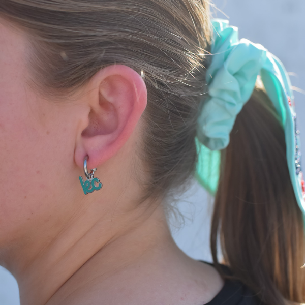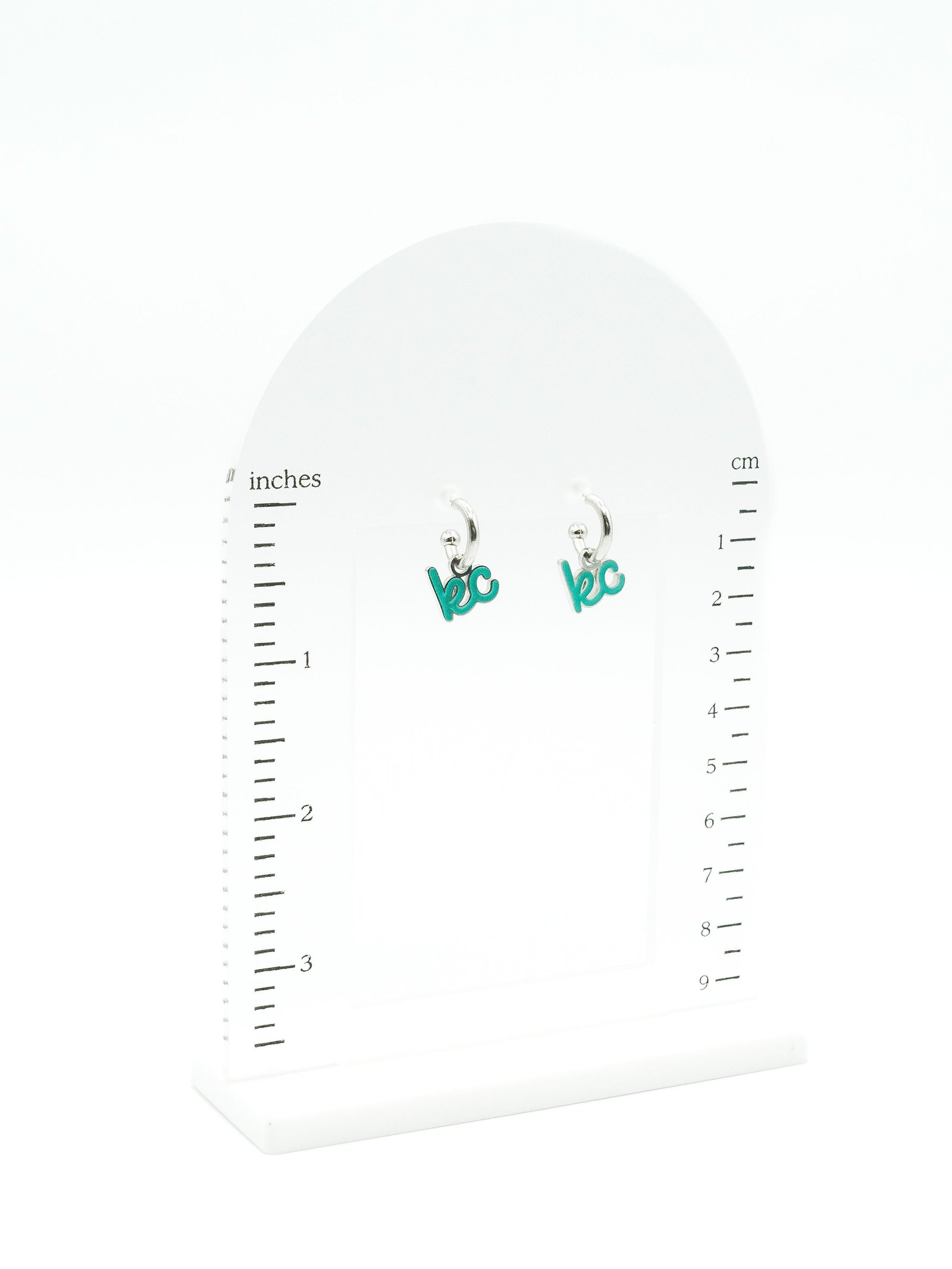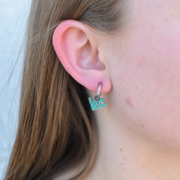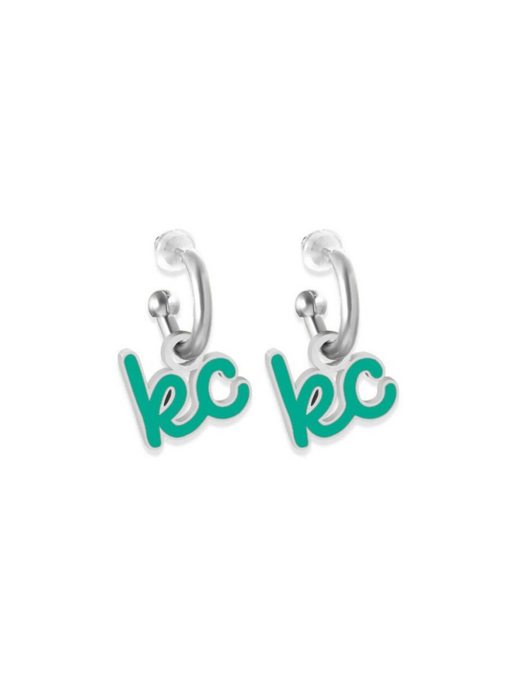 Embrace the charm (literally) of these Kansas City teal script huggie hoop earrings. With a cute and simple design, they add a fun touch to your everyday look. Perfect for the playful and fun-loving fashionista (or just anyone who wants to add a little quirk to their outfit).