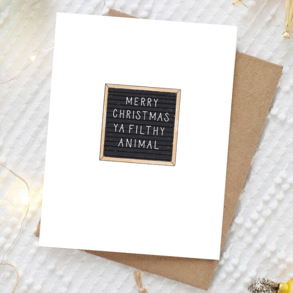 Celebrate the holidays with the Maddon and Co. Holiday Cards featuring a timeless holiday movie reference. Each card is hand drawn for a unique touch. Spread festive cheer with this quirky and fun card.