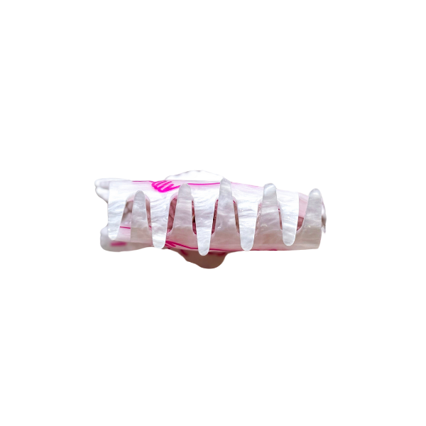 This 'Precious Moment' claw clip is perfect for adding a touch of cuteness and fun to any hairstyle. The sturdy clip easily holds hair in place, making it a convenient accessory for everyday use. Its playful design will surely brighten up any look.