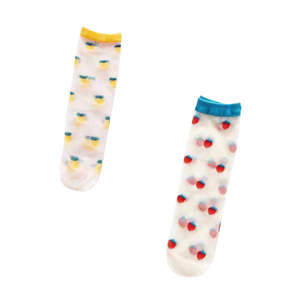 Experience the cuteness, fun, and comfort of our Sheer Fruit Socks! Made with the softest materials for ultimate comfort, these socks will bring a burst of energy to any outfit. Show off your playful side with these must-have additions to your sock collection.