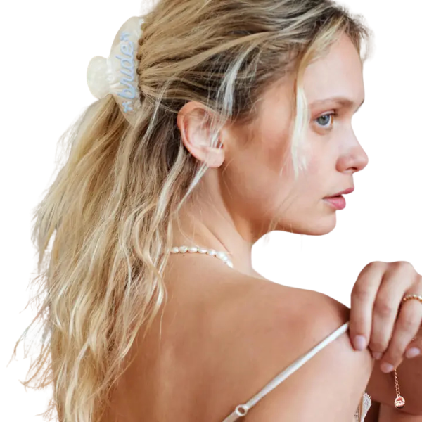 Get ready for your bachelorette party with the 'Something Blue' Bride & Bows Claw Clip! This cute and fun accessory will add a touch of style to your getting ready process. Perfect for any bride-to-be who wants to feel confident and fabulous on her special day.