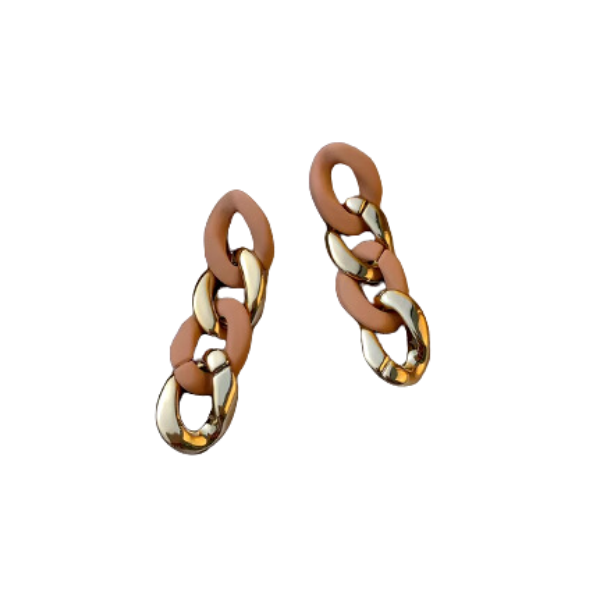 Vintage Style Statement Earrings - Brown & Gold Chain